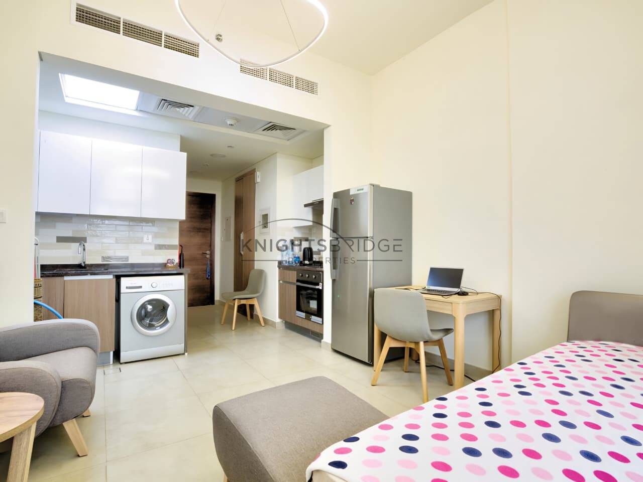 Knightsbridge Properties is proud to present this impeccably maintained, fully furnished studio apartment in Azizi Plaza, Al Furjan. Designed for modern urban living, this unit offers a seamless “plug-and-play” experience in one of Dubai’s most connected residential hubs.
